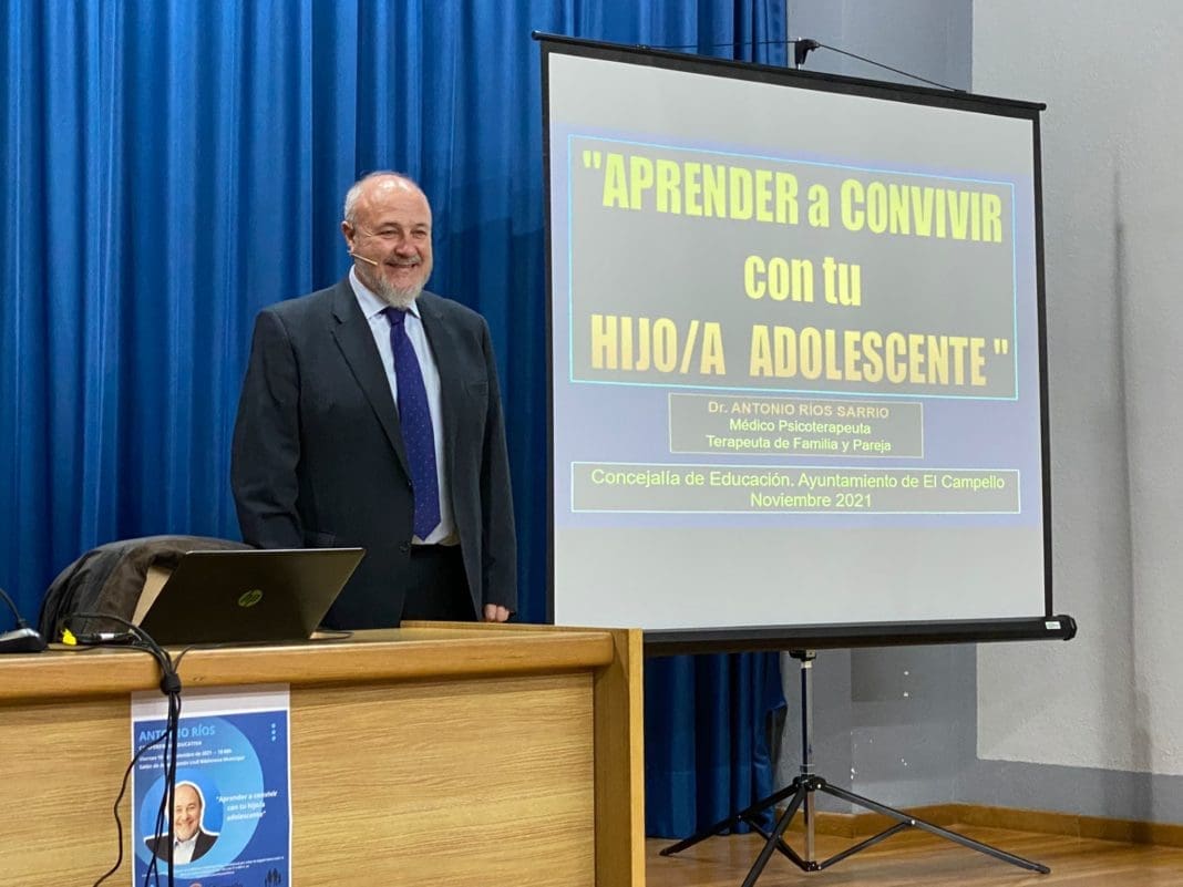 Se ganó al público desde el minuto 1, y retuvo al atención del auditorio lleno durante casi dos horas de charla. Antonio Ríos, psicólogo y experto en adolescencia, disertó anoche en la sala Ramón Llull de la Biblioteca Municipal sobre “Aprender a convivir con tu hijo/a adolescente”, organizado por la concejalía de Educación que dirige Dorian Gomis como uno de los actos de la programación de la Escuela de Padres.