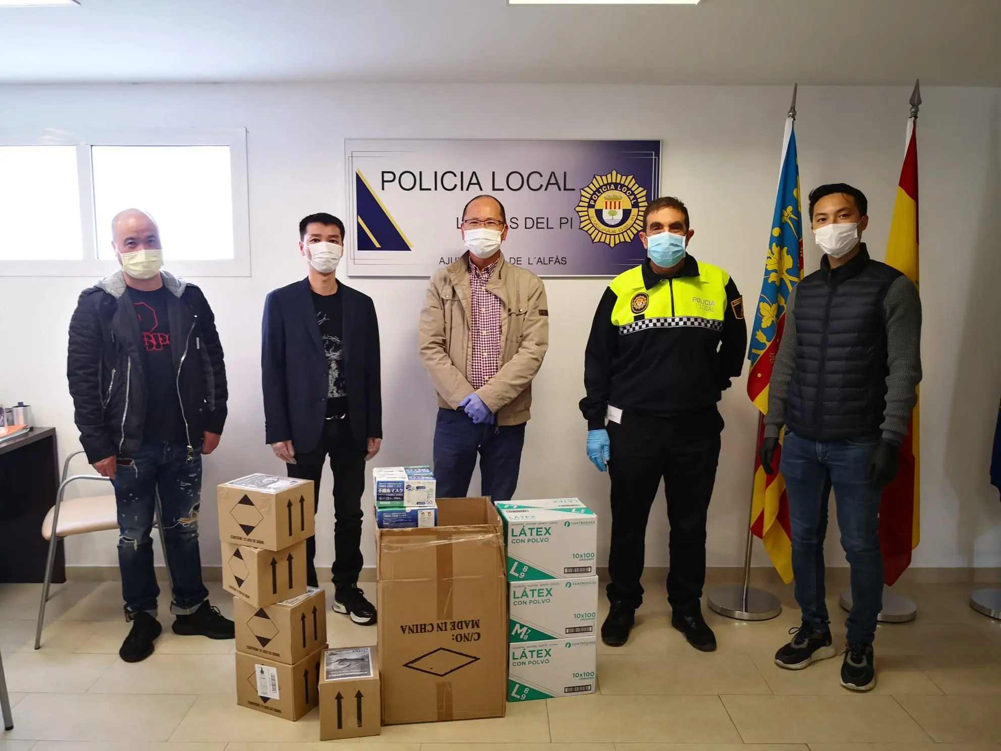 Representantes de la comunidad China en la provincia de Alicante han donado, al Ayuntamiento de l’Alfàs del Pi, 2.000 unidades de mascarillas de uso sanitario, 30 cajas de guantes y 60 botellas de gel de 300ml, con la intención de ayudar para erradicar la expansión de un virus, el COVID-19, que no sabe de fronteras.