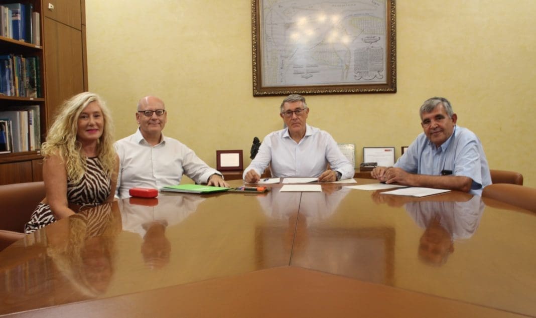 El presidente de la Confederación Hidrográfica del Segura (CHS), Mario Urrea, junto al Comisario de Aguas, Francisco Javier García, han mantenido una reunión de trabajo con el presidente de la Comunidad de Regantes (CR) de la Margen Derecha del Pilar Horadada, Salvador Sánchez.