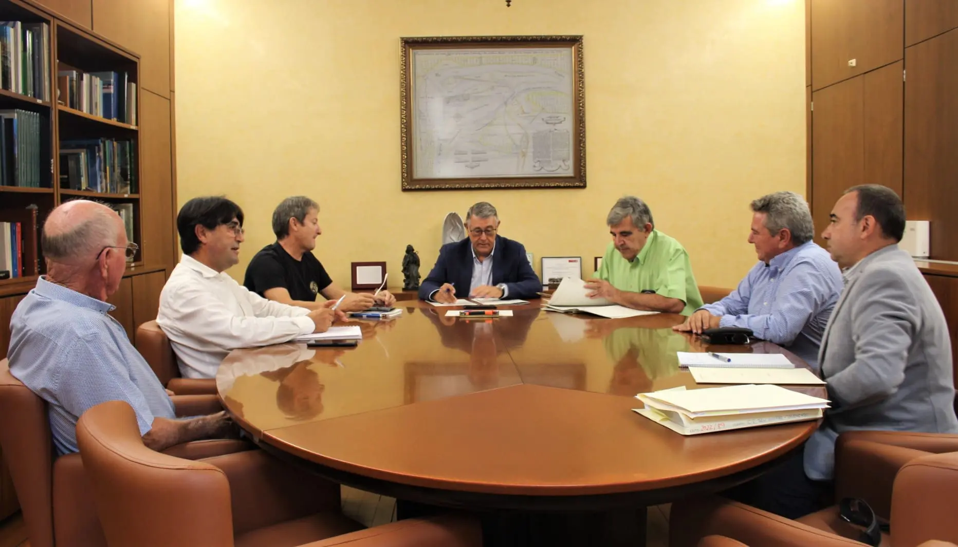 El presidente de la Confederación Hidrográfica del Segura (CHS), Mario Urrea, junto al Comisario de Aguas, Francisco Javier García, han mantenido una reunión de trabajo con los presidentes de Comunidades de Regantes (CCRR) de San Onofre, Torremendo y Barranco de Hurchillo acompañados por el representante de ASAJA (Alicante), Jose Vicente Andreu.