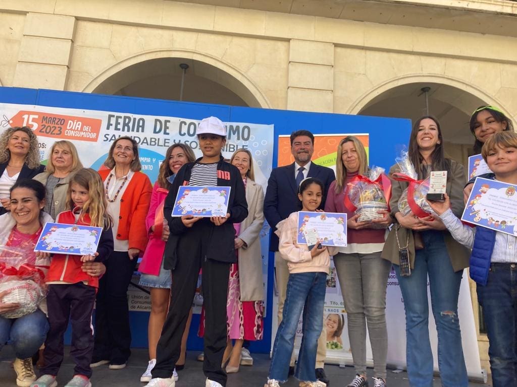 Alicante se ha sumado a las celebraciones con motivo del Día Internacional del Consumidor celebrando una Feria de Consumo Sostenible y Saludable en la plaza del Ayuntamiento, a la que han acudido cientos de personas y alumnos de los colegios durante toda la mañana.