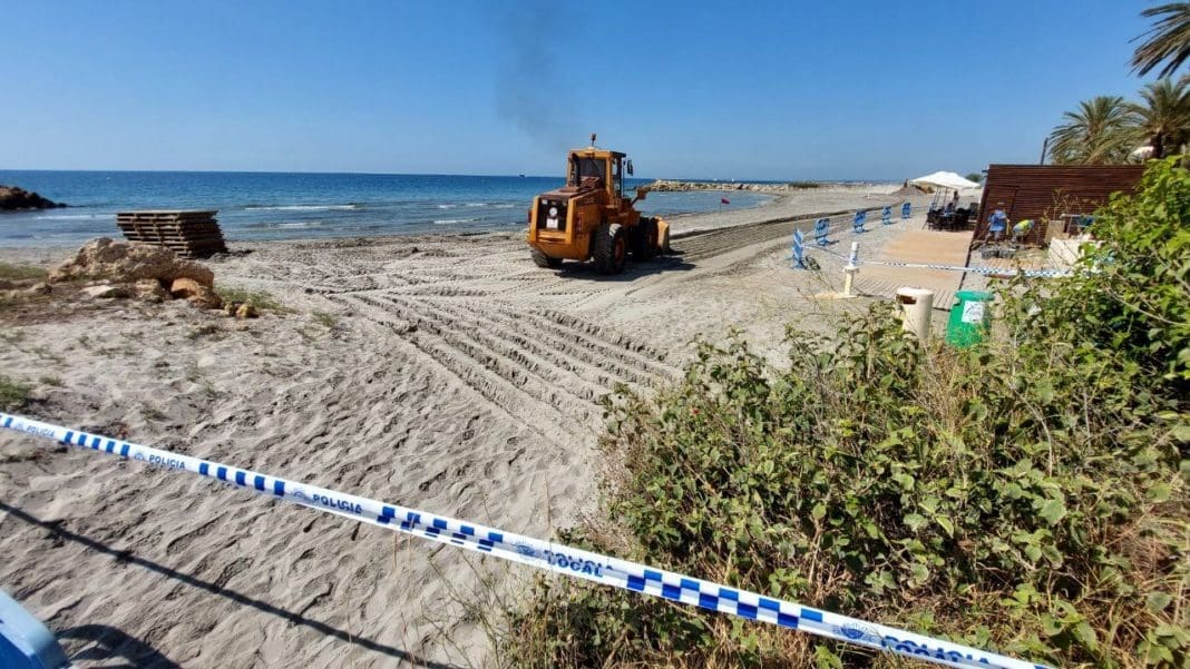 El Ayuntamiento trabaja con urgencia para restaurar la normalidad en una cala de Santa Pola del Este.