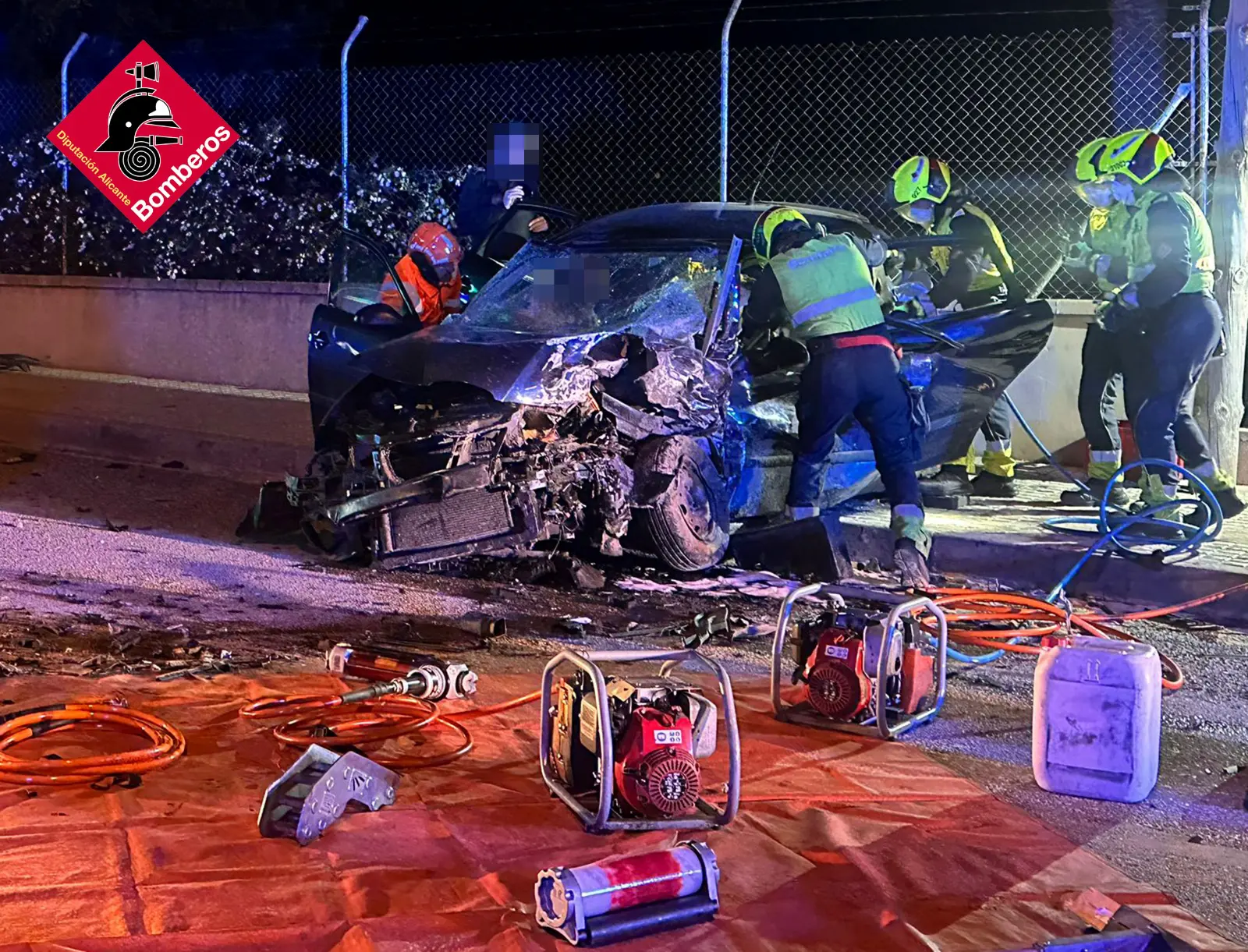 Los bomberos excarcelaron al conductor de uno de los vehículos. Todos los heridos presentaban contusiones y fueron trasladados al Hospital del Vinalopó de Elche y al General de Elche.