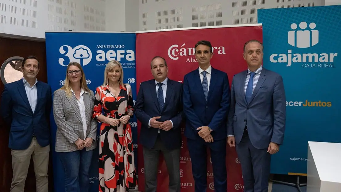 La gala ha sido presentada esta mañana en rueda de prensa por Carlos Baño, presidente de Cámara Alicante, Maite Antón, presidenta de la Asociación de la Empresa Familiar de Alicante (AEFA), Manuel Nieto, director territorial de Cajamar, Juan de Dios Navarro, diputado provincial de Cultura, y Mª Carmen de España, concejala de Empleo y Fomento del Ayuntamiento de Alicante.