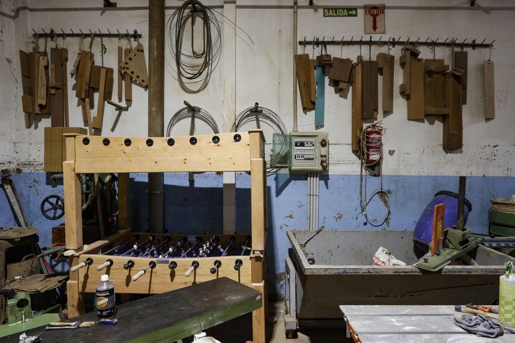 Un profesor inició una campaña entre los padres para encargar por 1.800 euros dos futbolines al último artesano de la Comunitat Valenciana