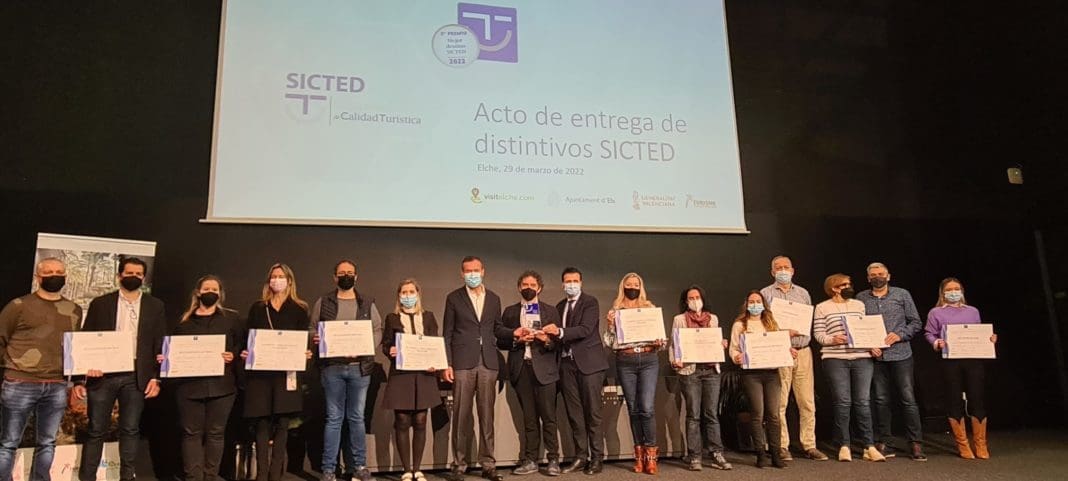 El presidente de Turisme Comunitat Valenciana ha entregado junto con el alcalde de Elche, Carlos González, los distintivos Sicted a seis empresarios y empresarias y entidades de la localidad, mientras que otros ocho servicios del municipio han renovado el distintivo.