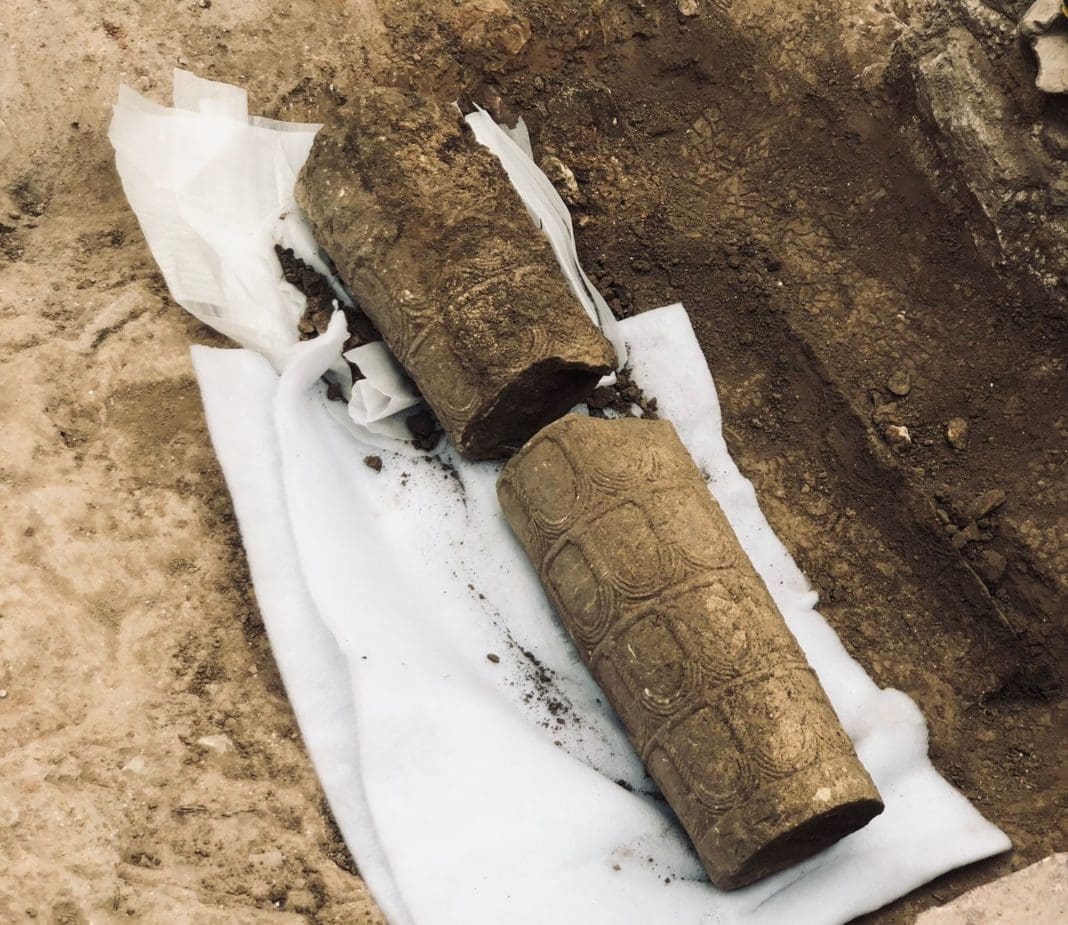 Si hace un par de semanas se documentó la existencia de parte de un mosaico con decoración vegetal y de color bícromo (blanco y negro), datado entre los siglos III y principios del IV después de Cristo, a falta de confirmar el estudio de los restos arqueológicos, ahora sorprende la aparición de parte de una columna que está partida en dos partes, de 1,40 m de altura y unos 30 cm de diámetro en total y del que destaca una decoración arquitectónica, basada en una seriación de columnas y arcos de medio punto.