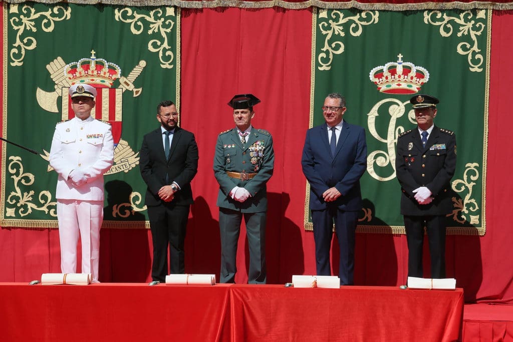 El acto institucional presidido por el coronel jefe ha contado con la asistencia del subdelegado del Gobierno, Juan Antonio Nieves, el comisario principal jefe provincial de Policía Nacional en Alicante, Manuel Lafuente, y el presidente de la Diputación, Toni Pérez, entre otras autoridades e invitados.