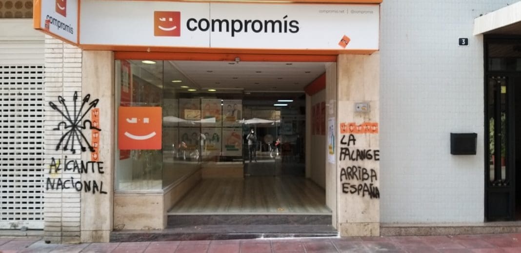 Compromís per Alacant denuncia los actos vandálicos ocurridos durante la madrugada de este domingo, cuando unos fascistas han pintado la fachada de la sede alicantina de la coalición, y se solidariza con el resto de formaciones que han sufrido la misma acción. El vandalismo será denunciado ante la Policía.
