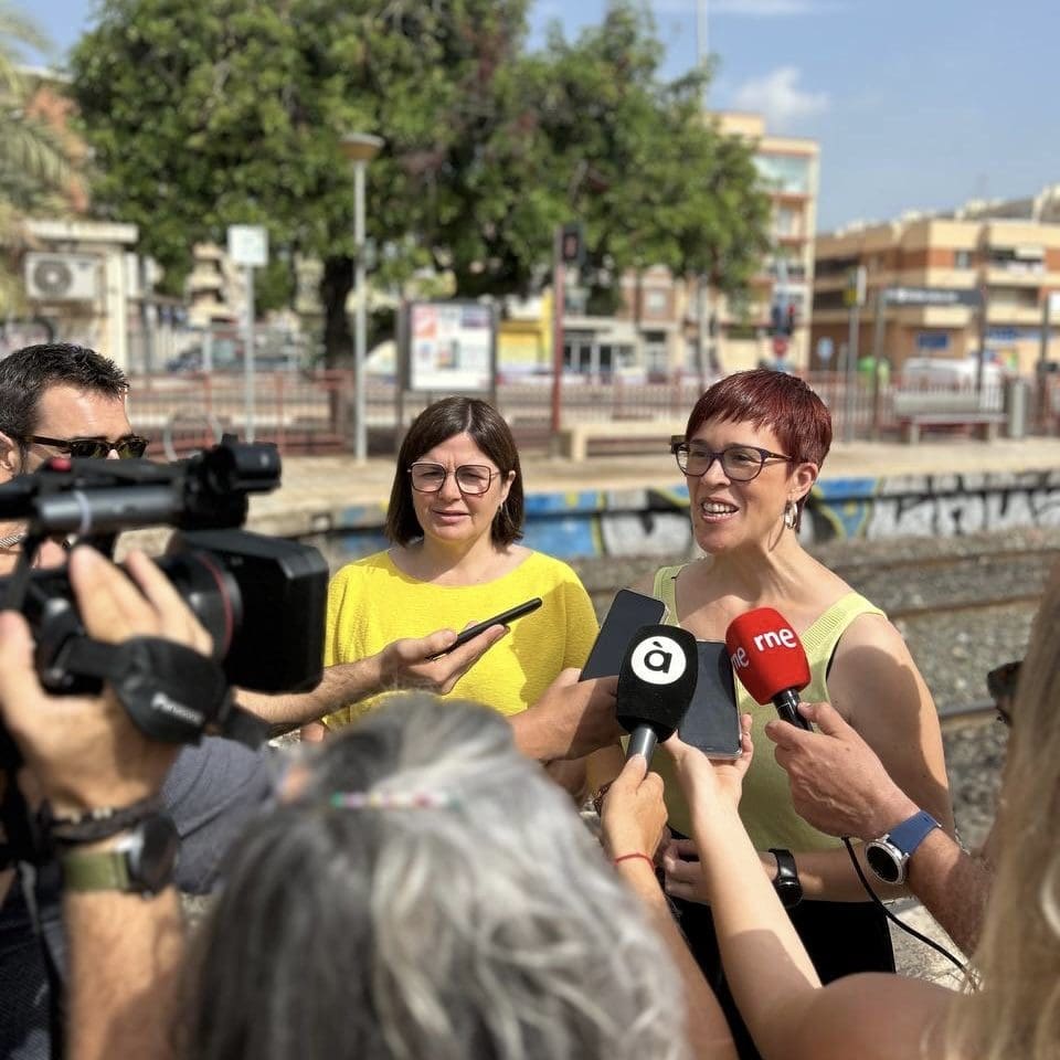 Àgueda Micó, cabeza de lista al Congreso por Valencia y la número 2 por Alicante, Imma Orozco han desarrollado hoy desde el apeadero de San Gabriel uno de los principales ejes programáticos de Compromís-Sumar, la inversión ferroviaria en la provincia.