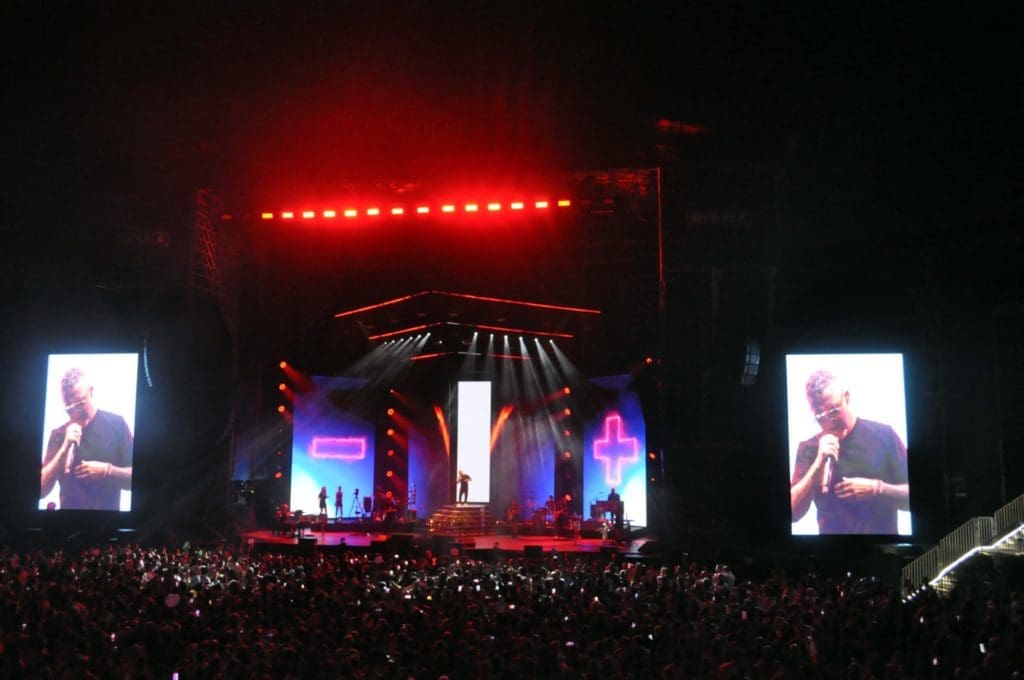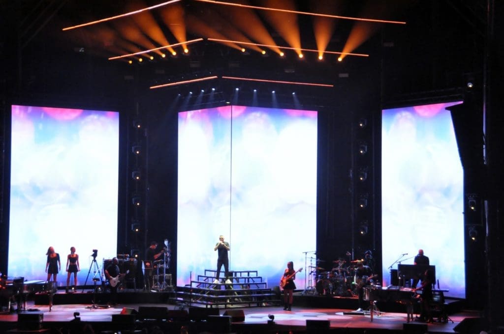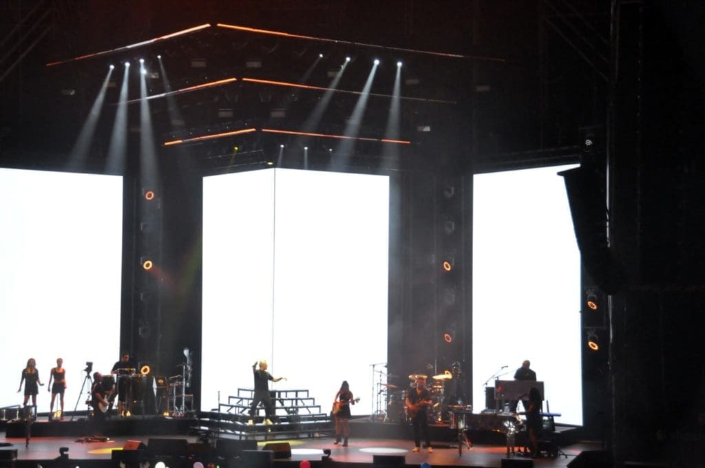 Los que si fue realmente llamativo en el concierto fue la espectacular puesta en escena, con seis pantallas de más de ocho metros de altura y unos sofisticados efectos visuales, que sugerían el universo de David Lynch, en los que, junto con las llamas, humo y paisajes desérticos, se mezclaban imágenes del caribe y planos del propio Alejandro Sanz.