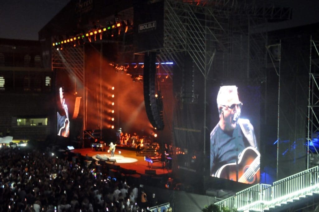 Durante todo el concierto Alejandro Sanz estuvo acompañado de su “compañeras de viaje y de vida”, sus guitarras. Y lo cierto es que utilizó varias de ellas y demostró su buena técnica también como guitarrista.