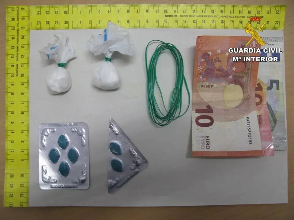 Agentes de la Guardia Civil han detenido en un control en la localidad alicantina de Guardamar de Segura a un conductor como presunto autor de un delito de tráfico de drogas al serle intervenidos en su vehículo 10 gramos de cocaína y dos blíster con seis dosis de medicamento para la disfunción eréctil, que imitaban el nombre comercial y el color de un conocido fármaco y que supuestamente distribuía de forma individual.