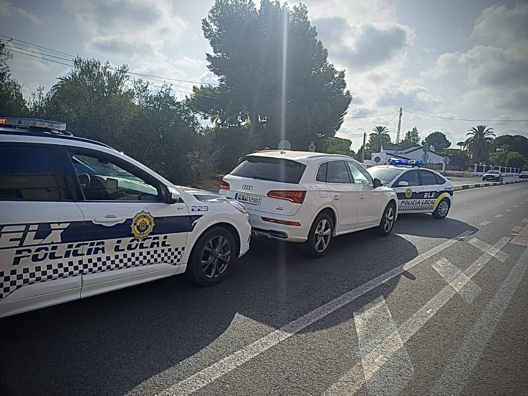 El pasado martes 23 de julio, la Policía Local intervino en un incidente de tráfico de alto riesgo ocurrido en la vía pública a la altura del kilómetro 3.800 de la CV-865, término municipal de Elche.