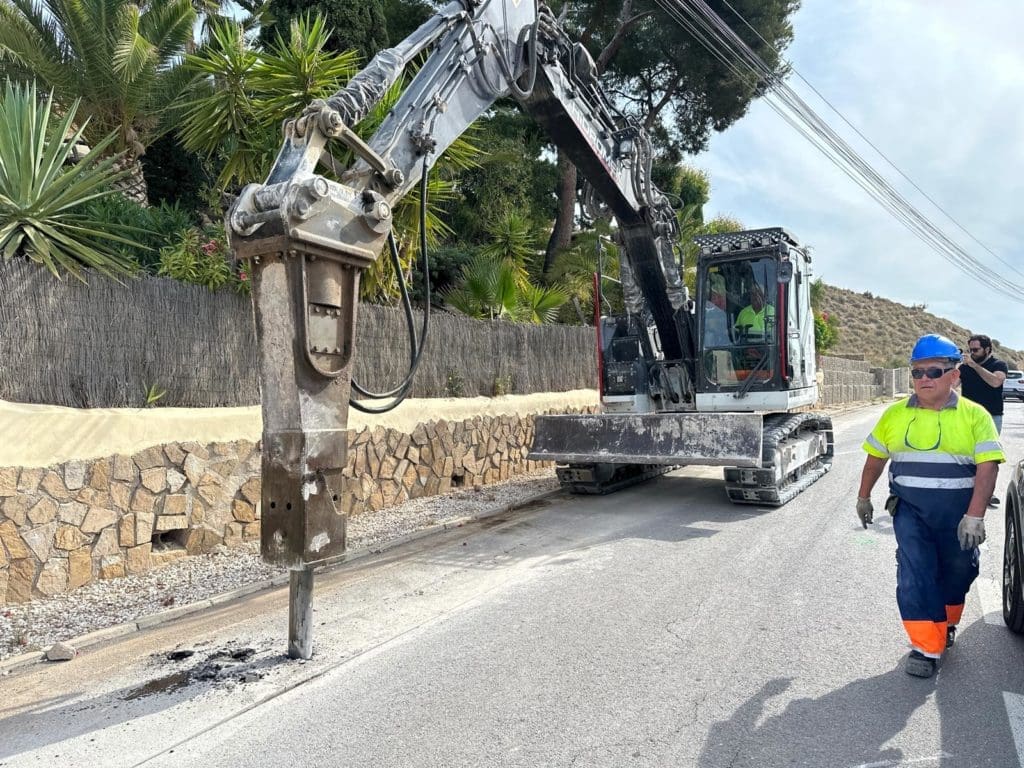 En concreto, se trata del vial que enlaza Cala Piteres con el Barranc de Aigües, donde la taladradora ha comenzado a picar para dar forma a una zanja por la que discurrirán las tuberías. Se prevé que los trabajos estén finalizados en los últimos meses de 2025.