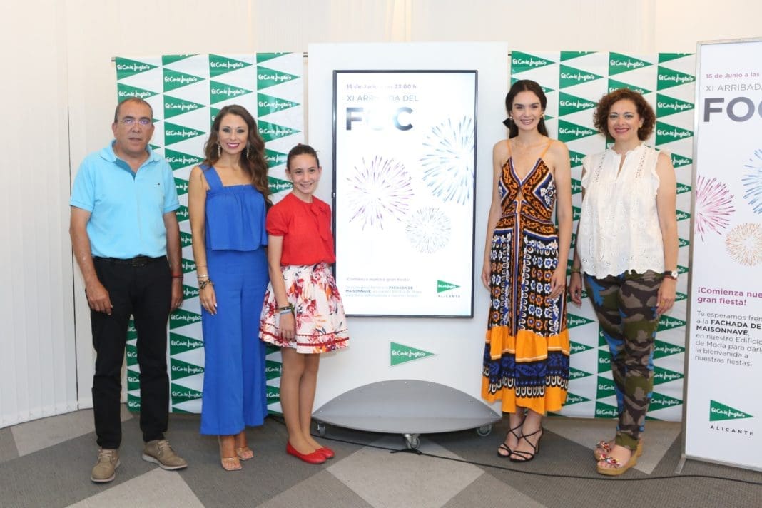 La Directora de Comunicación de El Corte Inglés de Alicante, Silvia Aguilar, acompañada de la Bellesa del Foc 2023, Belén Mora; la Bellesa del Foc Infanti l2023, Inés Llavador; la presidenta de la Federación de Hogueras, Toñi Martín-Zarco y la pirotecnia Ferrández han presentado esta mañana la XI Edición de L’Arribada del Foc.
