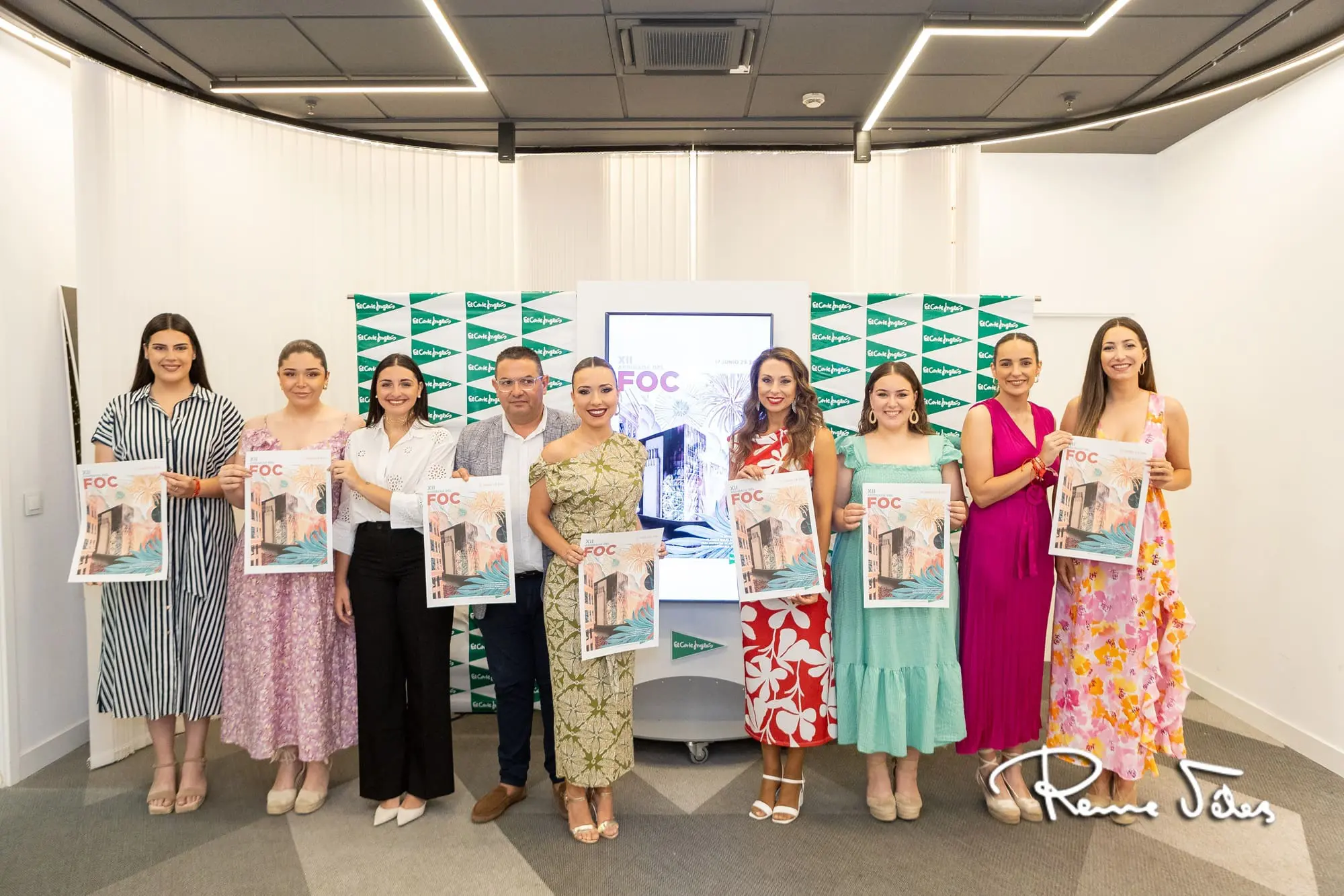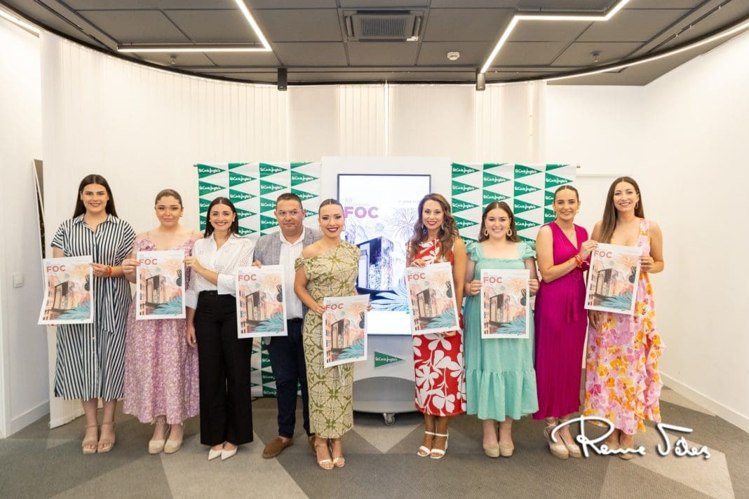 La Directora de Comunicación de El Corte Inglés de Alicante, Silvia Aguilar, acompañada de la Bellesa del Foc 2024, Alba Muñoz; la Bellesa del Foc Infanti 2024, Martina Lloret; el presidente de la Federación de Hogueras, David Olivares y la pirotecnia Reyes Martí han presentado esta mañana la XII Edición de L’Arribada del Foc.