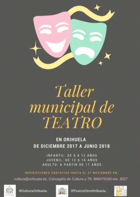 La Concejalía de Cultura ha puesto en marcha el Taller Municipal de Teatro que se desarrollará en el Teatro Circo Atanasio Die de Orihuela desde el mes de diciembre hasta el 15 de junio del próximo año.