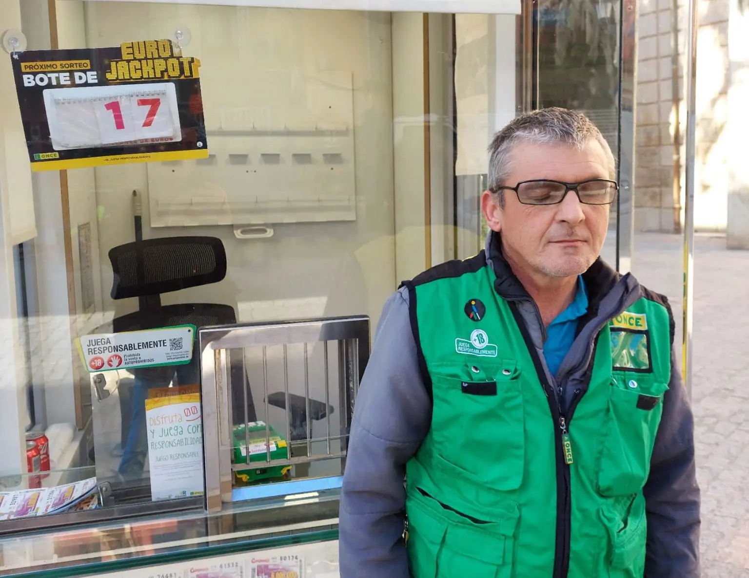 Y Vicente Alberto López Martínez, vendedor de la ONCE desde diciembre de 1999,adscrito a la Agencia de Orihuela, ha repartido 1 boleto premiado con 35.000 euros desde su ruta de venta en Benferri y Virgen del Camino.