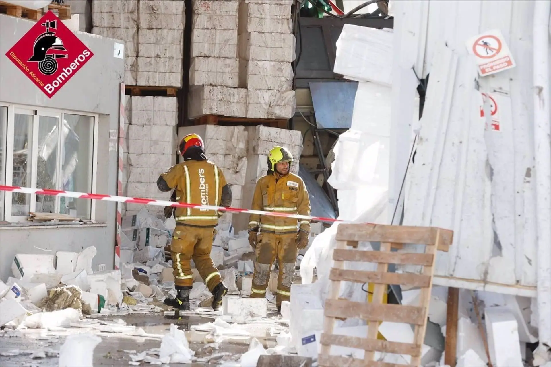 Los hechos sucedieron sobre las 12.00 horas en una empresa de la calle Murcia de un polígono de Ibi al explotar una caldera que colapsó parte de la fábrica, del techo y de los muros de la empresa.