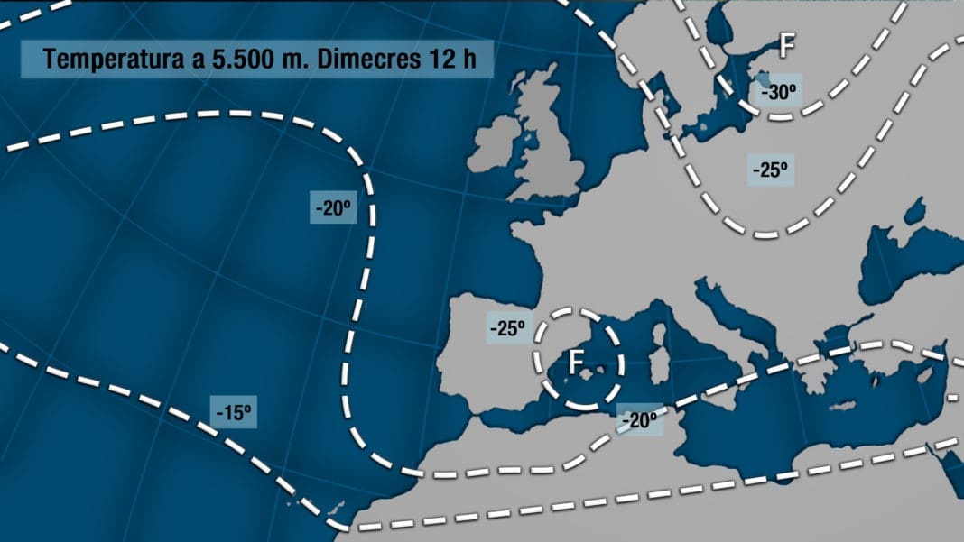 Mientras confirmamos lo que acabo de explicar todo indica que quién acabará imponiéndose será el viento de mistral que mañana llevará nubes a las montañas del norte de la Comunitat donde hay que esperar chubascos débiles y nieve alrededor de los 800-900 metros.