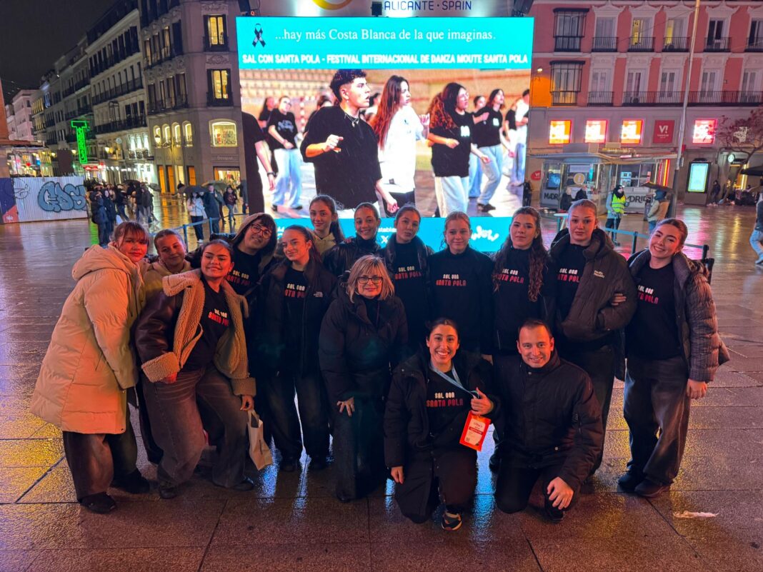 La plaza de Callao en Madrid se convirtió anoche en el centro de la danza, con una performance de la escuela Fem Dansa para anunciar que febrero es el mes de la danza en Santa Pola con el Festival Internacional Moute 2026. La iniciativa forma parte de la campaña turística “SAL, con lo nuestro”.