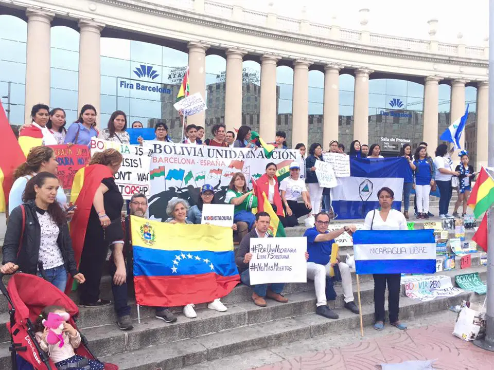 “Democracia sí, dictadura no”, eran parte de las consignas que gritaban los latinoamericanos en contra de las “dictaduras” impuesta por los gobiernos populistas en América Latina. Marcha pacífica que dio inicio, el 19 de mayo, a las 18:00 horas, (en la plaza de Sants, Barcelona), convocada por el movimiento Bolivia Unida en Acción y el Movimiento Nicaragüense en Barcelona, España); solidarizándose por la crisis sistémica actual de Nicaragua que, a un mes de protestas, han dejado un saldo de más de 60 víctimas, más de 450 personas heridas y alrededor de 15 personas desaparecidas, según lo confirma el registro de la Comisión Permanente de Derechos Humanos (CPDH), a los medios de comunicación independientes.