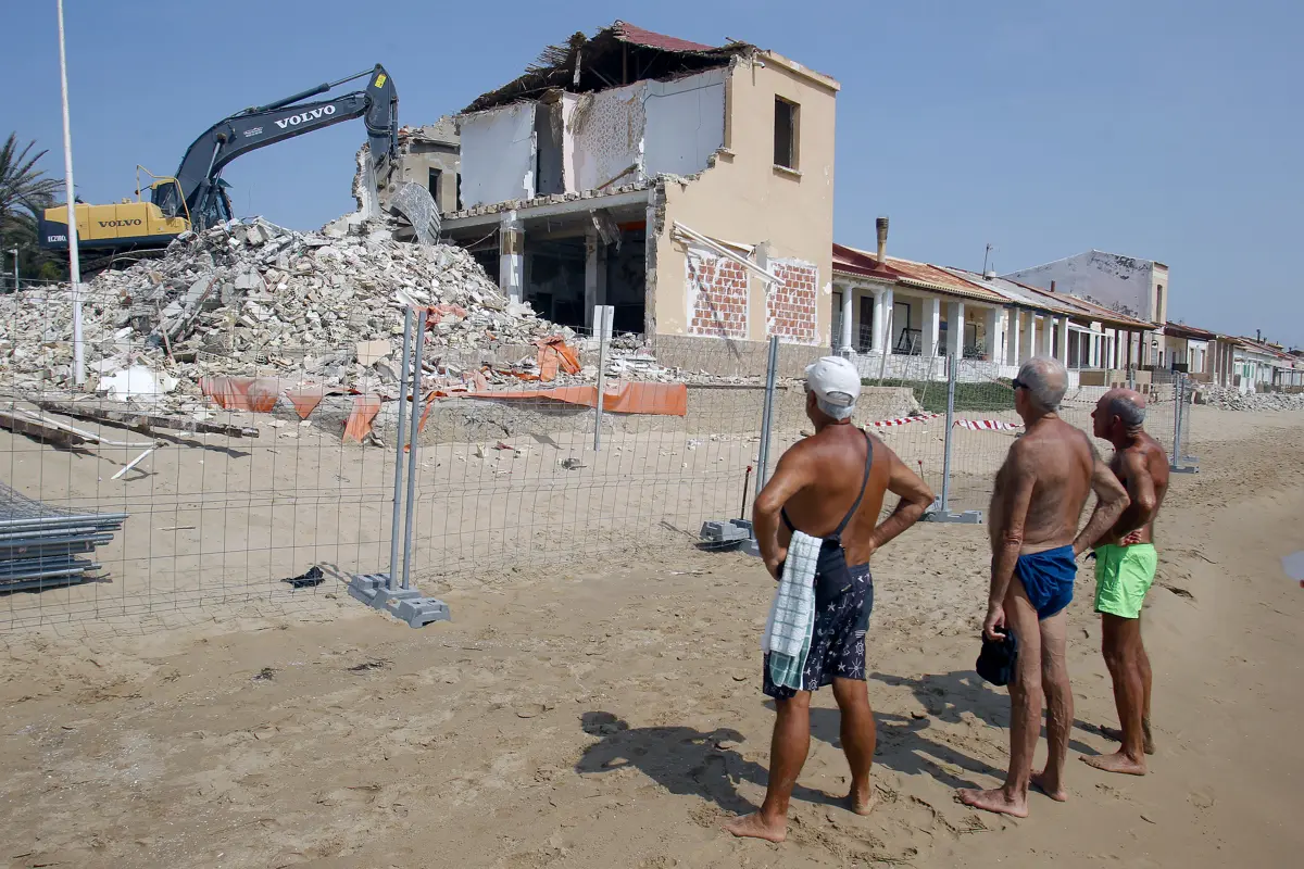 En un entorno con unas 60 viviendas en la misma situación en la avenida Ingeniero Cordorniú, las demoliciones han arrancado con el chiringuito Miramar (que llevaba varios años cerrado) y el Jaime Playa, aunque a partir del 15 de septiembre el Ministerio para la Transición Ecológica (MITECO) hará lo mismo con el resto de construcciones, situadas en la playa norte de Guardamar.