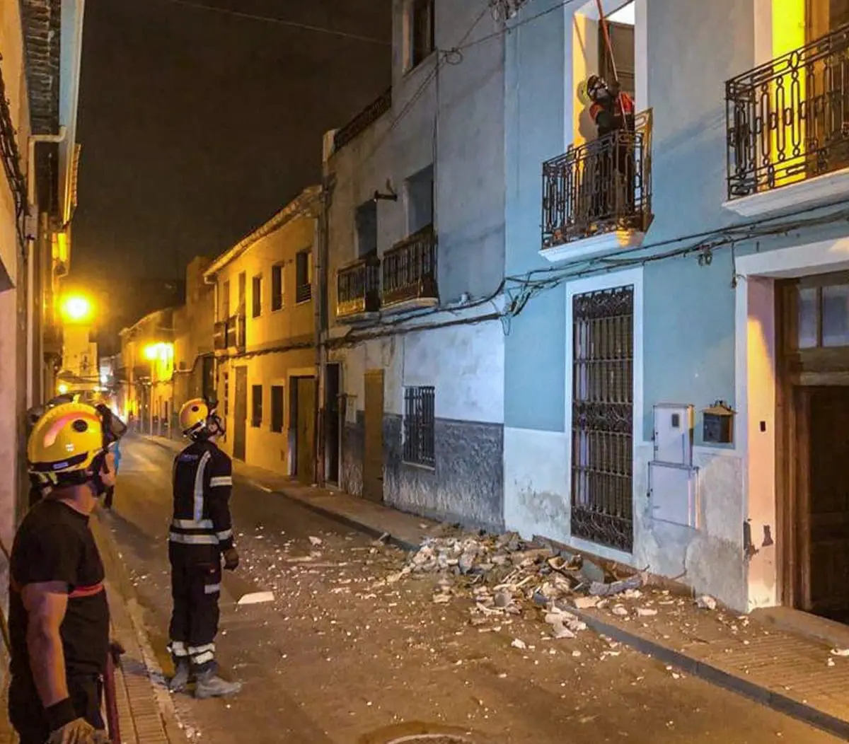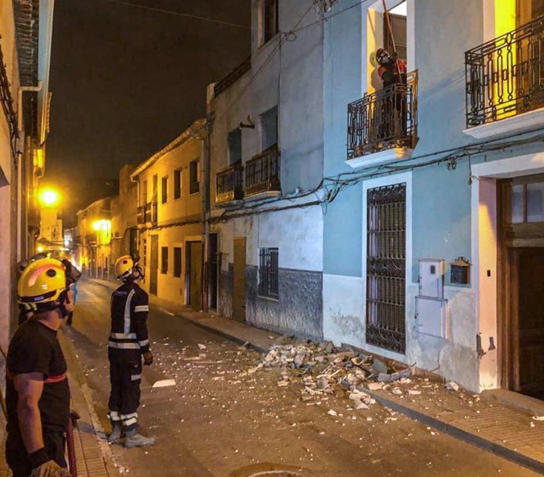 Los bomberos realizaron labores de retirada de cascotes, desescombro, balizado de la zona y, sobre todo, saneamiento de fachada para evitar más derrumbes.