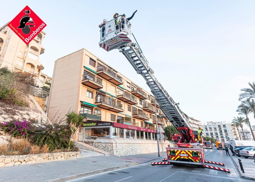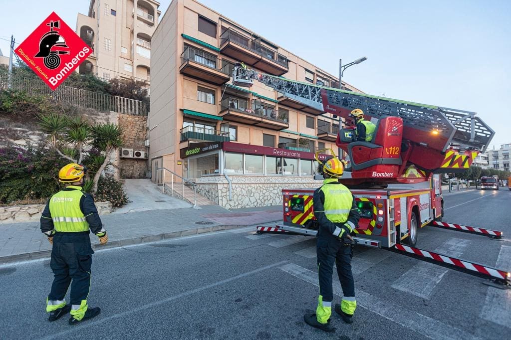 Afortunadamente, no ha habido que lamentar ningún herido pero se ha desalojado a los vecinos del edificio situado en la playa de Muchavista por otro punto al quedar la entrada sin acceso. Han actuado efectivos de la Policía Local, de la Guardia Civil, Bomberos del Consorcio Provincial, una unidad de bomberos del parque de la ciudad de Alicante y dos unidades de mando y jefatura que han requerido dos bombas, y una autoescala.