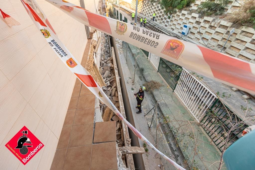 Fuentes municipales han comunicado que sobre las 6:30h horas de la mañana han caído cascotes de un edificio situado en la Avinguda Jaime I el Conqueridor, 46 de El Campello a la vía del TRAM d’Alacant.