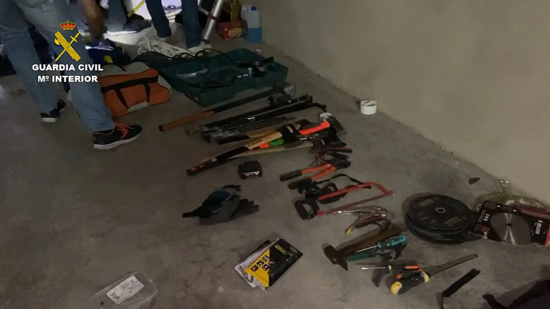 En los registros practicados, dos viviendas, en Orihuela Costa y La Mata-Torrevieja, y un garaje en Los Montesinos, se incautaron 1075 euros en efectivo, dos vehículos de alta gama, teléfonos móviles, ordenadores portátiles, indumentaria para cometer los delitos: guantes, pantalones y pasamontañas, así como numerosas herramientas para los butrones, tres radiales, un martillo neumático percutor, hachas, patas de cabra, una escalera telescópica, varias linternas o destornilladores.