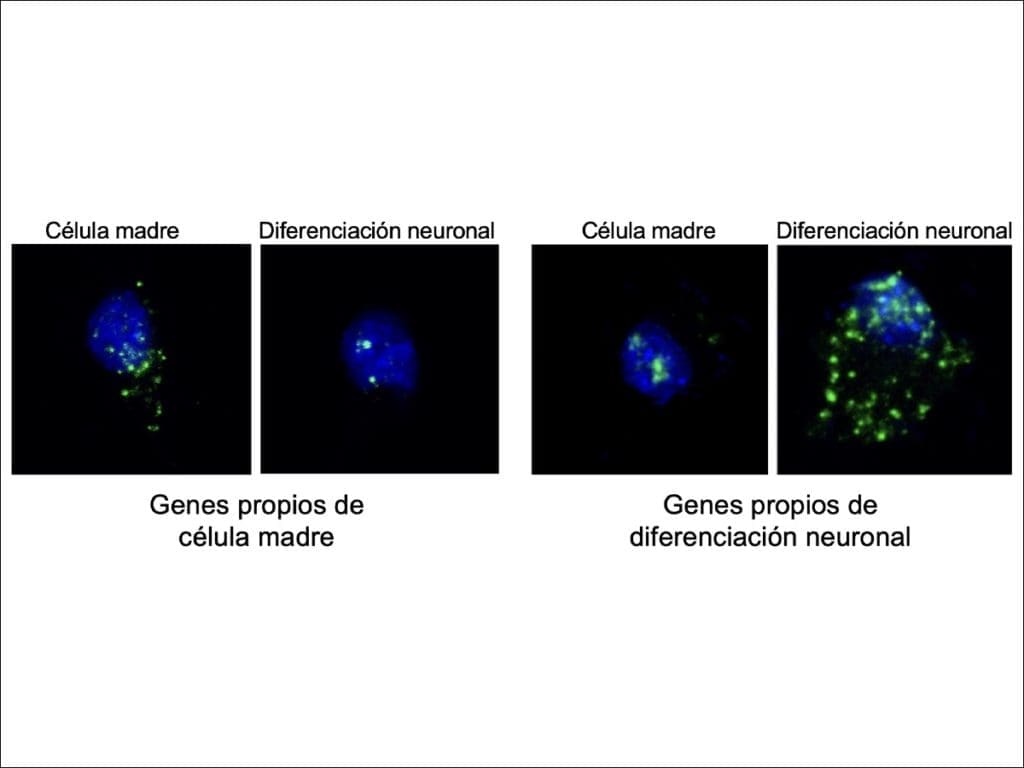 Todas las células de un organismo tienen los mismos genes, pero la diferencia entre unas y otras está en los genes que expresan y los que no. Esto es lo que se conoce como identidad celular y va a determinar las funciones de las células a lo largo de su vida. El caso de las células madre cerebrales es muy particular porque expresan los genes que las mantienen como células madre, pero también expresan otros genes que son propios de las neuronas que producen.