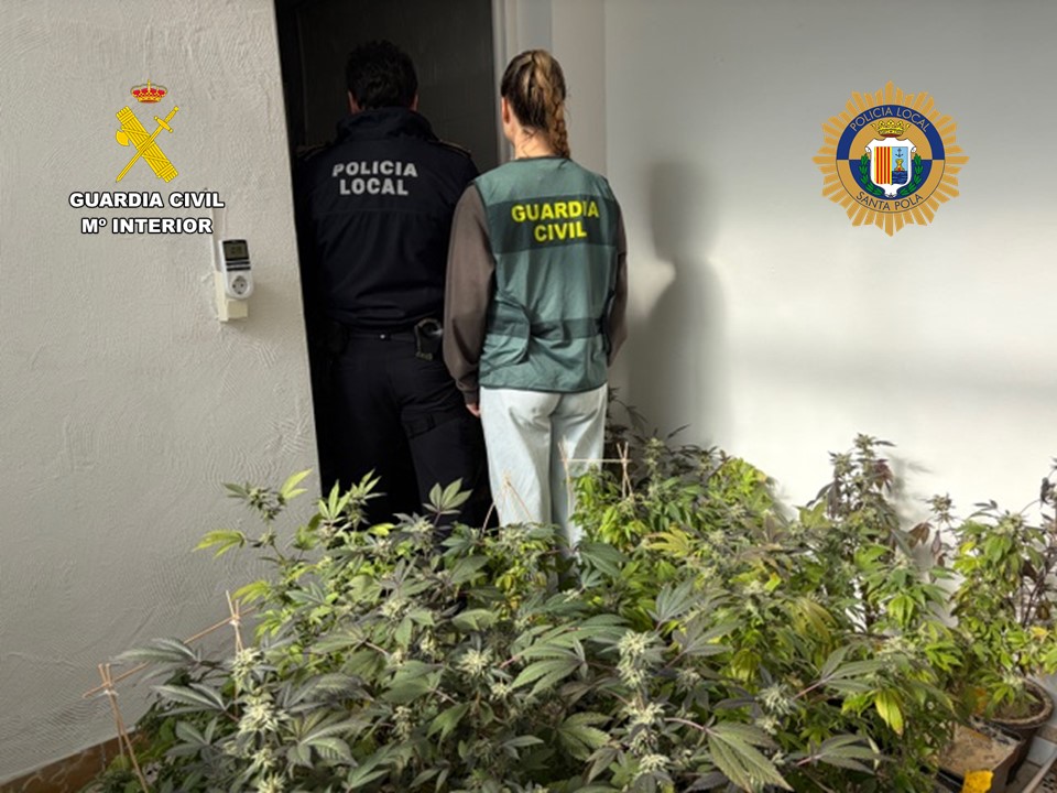 La Guardia Civil ha detenido a un hombre tras desmantelar una plantación de marihuana en Santa Pola ubicada en una vivienda del centro urbano. La actuación ha sido posible gracias a la colaboración ciudadana y al trabajo conjunto con la Policía Local.