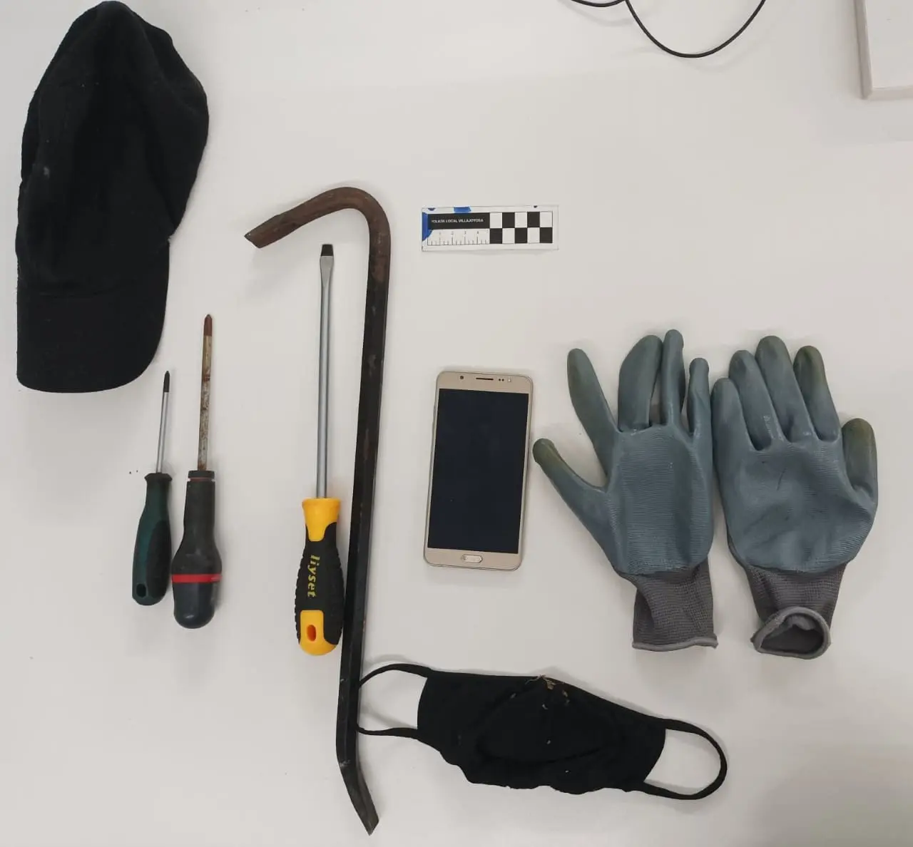 La investigada fue detenida cuando se encontrada esperando a su compañero, vigilando y guardando las herramientas de distinta naturaleza para el forzamiento de viviendas, tales como destornilladores de grandes dimensiones, guantes de goma de alta sensibilidad al tacto, una máscara negra, gorra de color negro y una herramienta metálica de palanca tipo “pata de cabra” de 48 cm de longitud.