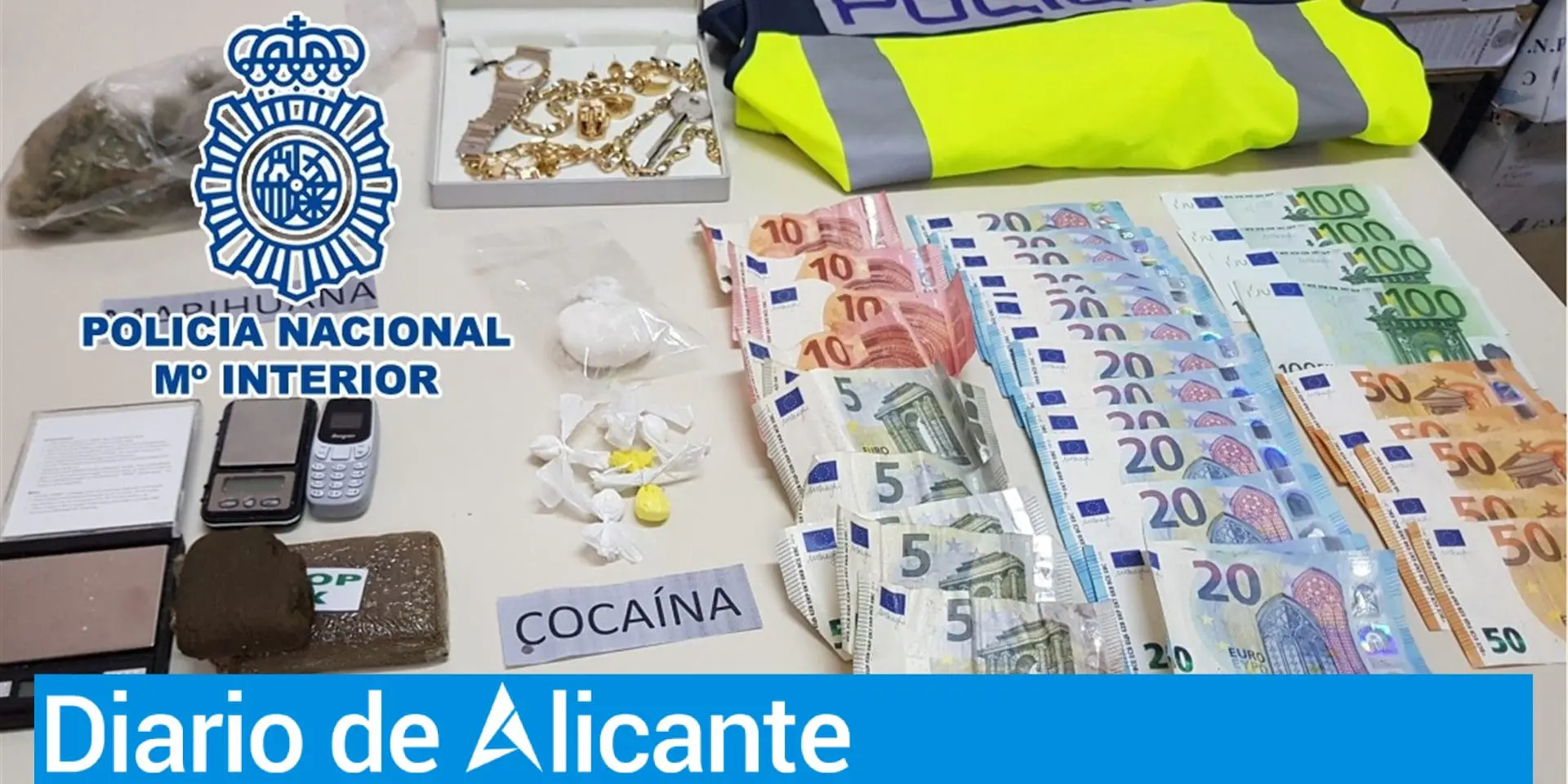 En los registros los agentes incautaron hachís, marihuana y cocaína, todas ellas listas para su venta y distribución en pequeñas dosis, así como joyas, diferentes objetos de valor y dinero en efectivo.