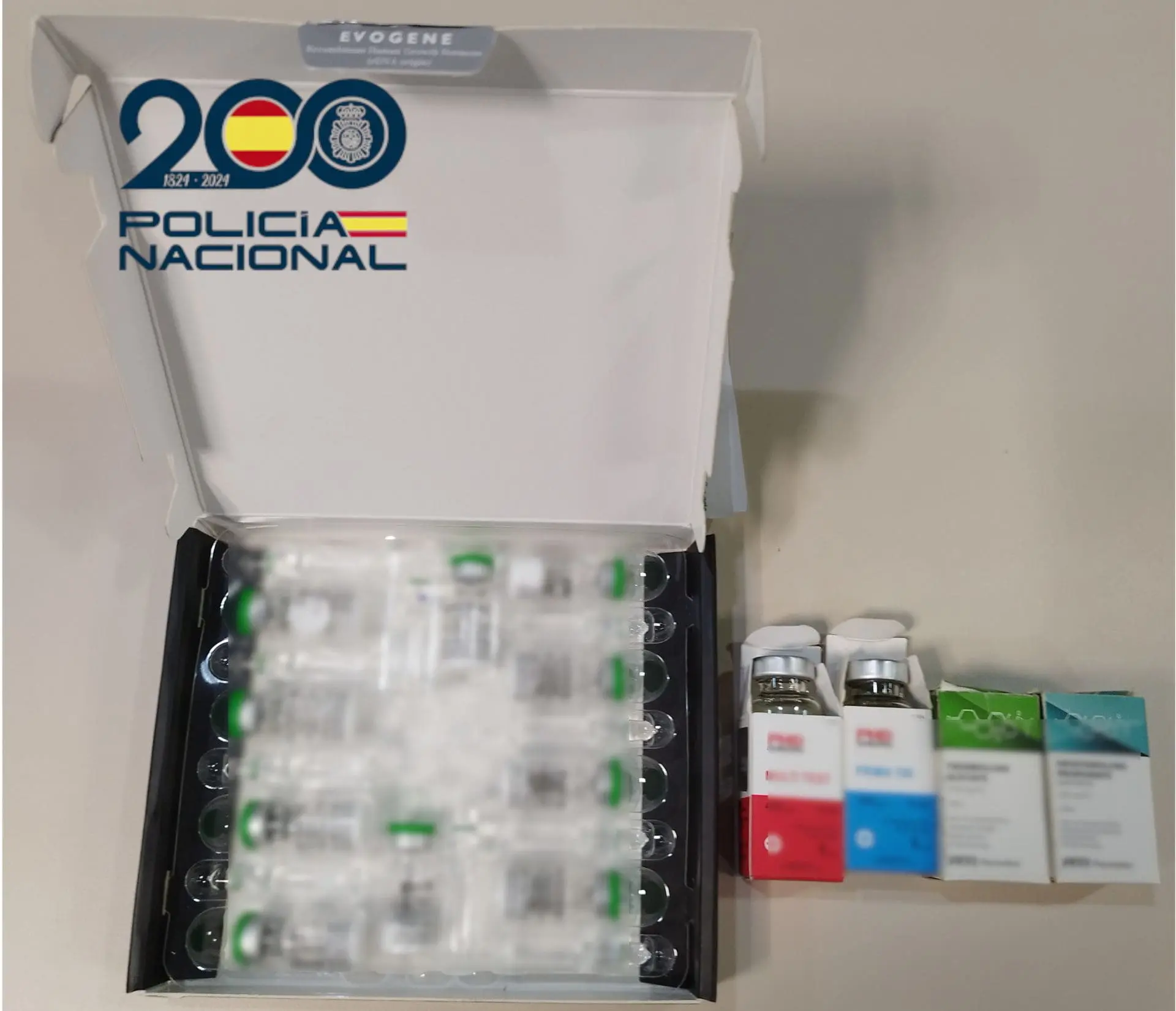 En el momento de la detención le fue intervenido un bulto que contenía diversas sustancias anabolizantes, todas ellas medicamentos no legales, como una caja de 10 viales de hormona de crecimiento humano, un vial de Enantato de Testosterona y Decanoato de Testosterona, un vial de Enantato de Metelonona, un vial de Propionato de Drostanolona, y un vial de Acetato de Trenbolona.