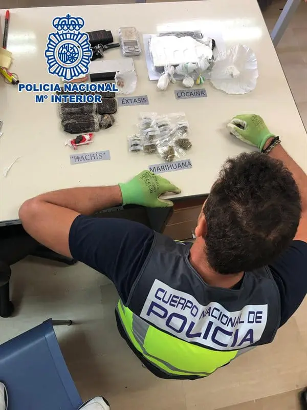 En el registro de la vivienda, los agentes se incautaron de dinero en efectivo, un kilo de cocaína, más de medio kilo de cogollos de marihuana, casi medio kilo de hachís, varias dosis de MDMA y multitud de materiales como balanzas y materiales para la venta y distribución.