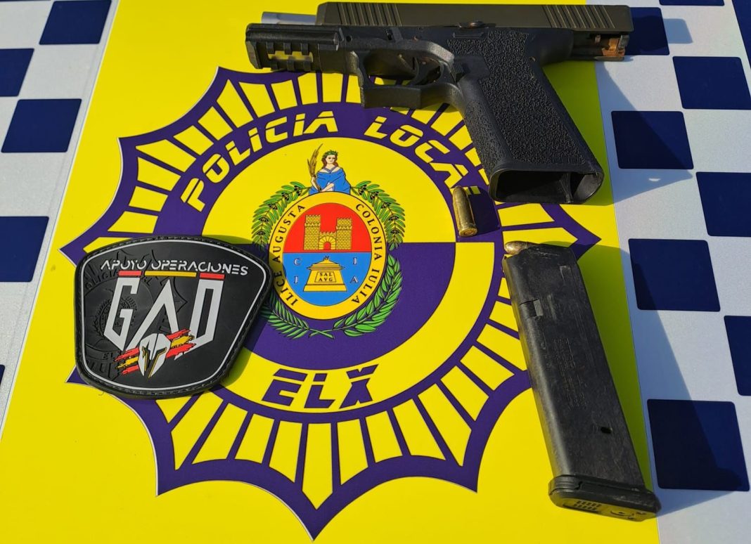 Agentes de la Policía Local de Elche han detenido a un varón en la partida de Carrús. Esto ocurrió tras intervenirle una pistola cargada con munición real que portaba en el interior de un vehículo de alquiler.