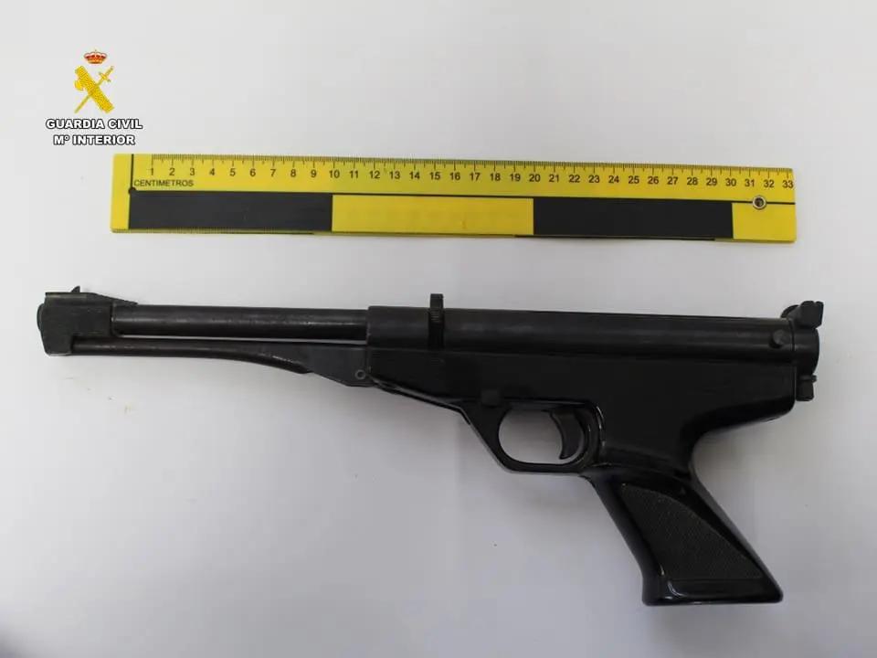 Durante el registro se localizaron dos escopetas, dos pistolas de aire comprimido, una de ellas una imitación de un arma real, tres katanas, cuatro carabinas de aire comprimido de los calibres 4,5, y 20 armas tipo navaja.
