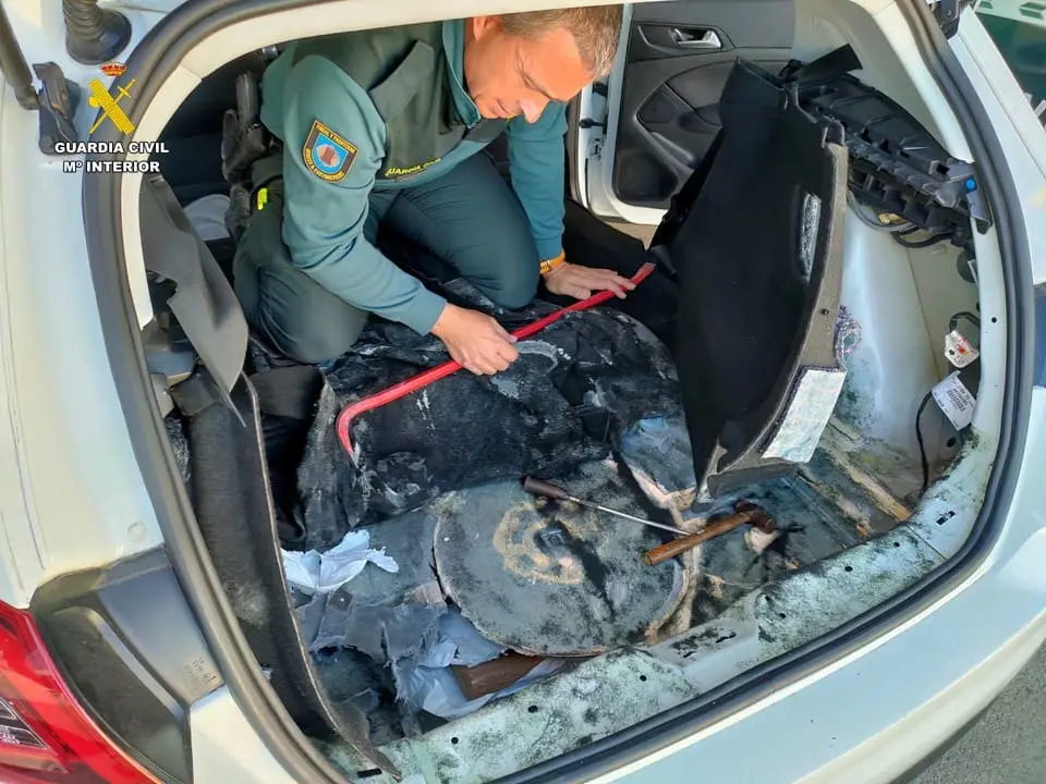 Durante una inspección de rutina a un vehículo con destino a Ibiza, ocupado únicamente por su conductor, los agentes observaron ciertos indicios que levantaron sospechas. Este hecho condujo a una inspección más minuciosa que reveló una modificación artesanal en el fondo del maletero del automóvil, creando un espacio estanco.