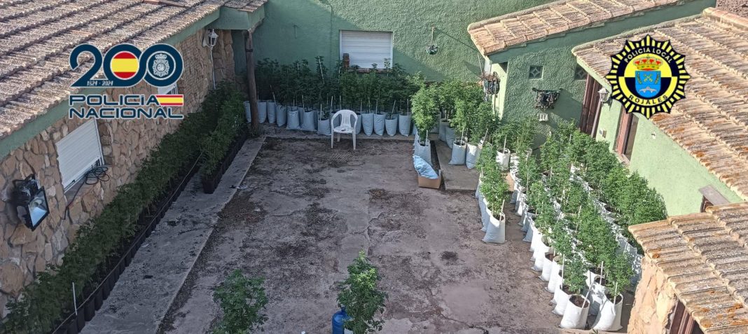 La Policía Nacional ha detenido a un hombre por ocultar una plantación de marihuana con 212 plantas en una finca arrendada que era utilizada como taller y desguace de vehículos clandestino en Rojales (Alicante).