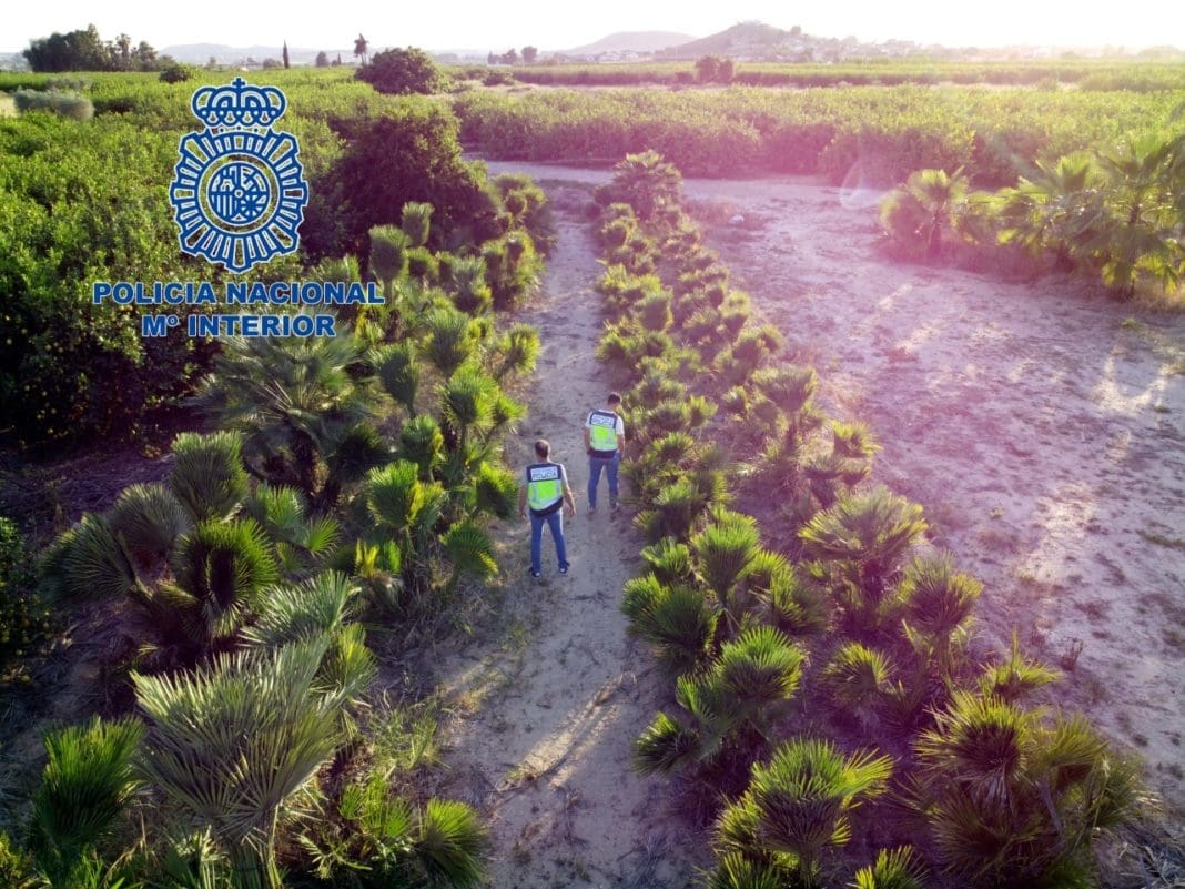 Tras interponer denuncia en la Comisaría de Policía Nacional de Orihuela, los agentes de la Comisaría llevaron a cabo la comprobación de hechos, comenzando con la confrontación de los datos obtenidos a pie de campo, realizando una inspección ocular y reportaje fotográfico en las dos parcelas colindantes donde se encontraba el cultivo, llevando a cabo un conteo de las distintas especies de Palmeras, pudiendo ver cómo había claros movimientos de tierra, hoyos de extracciones de palmeras y huellas de rodadura en la tierra, dejadas por la intervención de maquinaria pesada, además de otros restos de palmeras secas arrancadas y restos de quema.