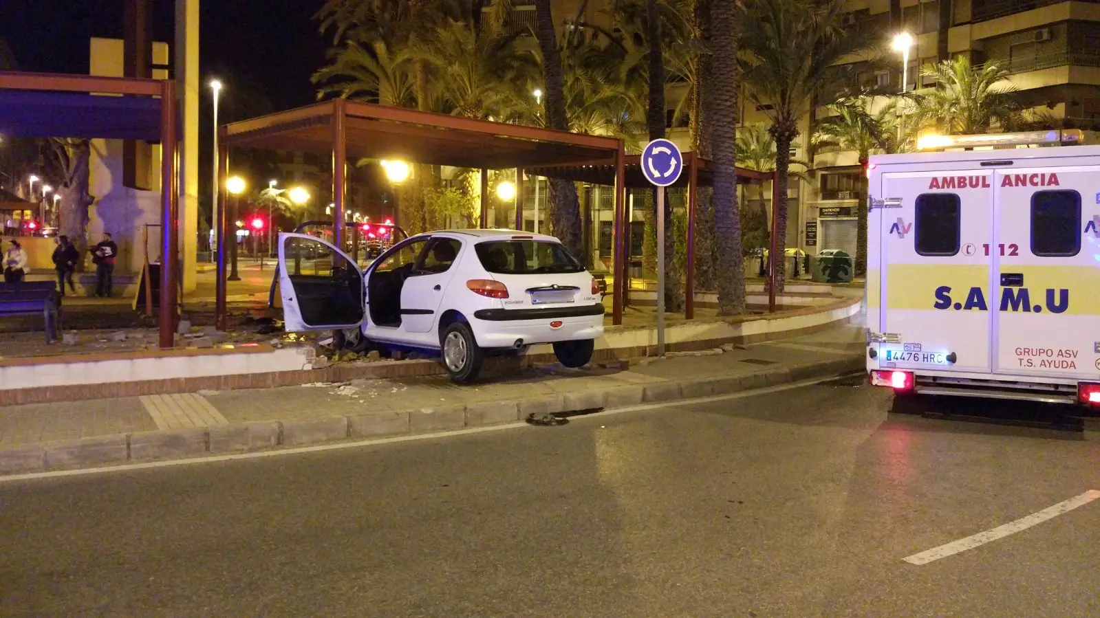 La noche del 28 de marzo, alrededor de las 00:50, un conductor colisionó con la plaza de Crevillente en lo que podría considerarse un accidente de trafico más. El vehículo, un peugeot 206 blanco, circulaba por la calle Antonio Machado hasta desembocar en la rotonda donde quedó empotrado. Testigos del accidente relatan que el que conducía el coche aceleró hasta colisionar con el murete y la pérgola metálica de la rotonda. Al parecer no tenía intención de frenar y por suerte no circulaba ningún otro vehículo por la rotonda ni peatón dentro de ella. Con los datos facilitados por los testigos los agentes que se habían acercado al lugar del accidente, procedieron a detener al conductor. La intervención de la unidad de Atestados e Investigación de Accidentes así como la ambulancia del SAMU, llegaron de inmediato al lugar del siniestro. Inicialmente dicha unidad lo estaba gestionando como un accidente de tráfico y estaban investigando las causas por las que el conductor había perdido el control de su vehículo. Al ser informados por testigos de cómo ocurrió la colisión y valorando que se trataba de una posible intencionalidad en la acción, convertiría el requerimiento inicial en un posible delito de daños. Una vez que se identificó al que manejaba el coche, procedieron los policías locales a detenerlo.