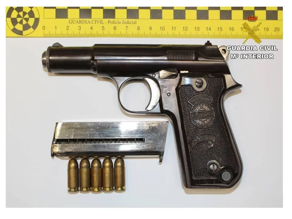 En el registro del coche utilizado se encontró un arma corta Astra Falcon, de fuego real, calibre 9mm corto, y cargada con cinco cartuchos.