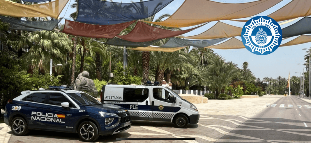 A los pocos minutos dos patrullas del Grupo de Atención al Ciudadano de la Comisaría de Policía Nacional en Elche se personaron en el lugar y pudieron interceptar a ambos varones una vez habían saltado de nuevo el muro perimetral pero hacia la vía pública, cuando trataban de huir del lugar. Antes de ser interceptados, uno de ellos arrojó un cuchillo debajo de un vehículo para evitar que los agentes lo encontrasen.