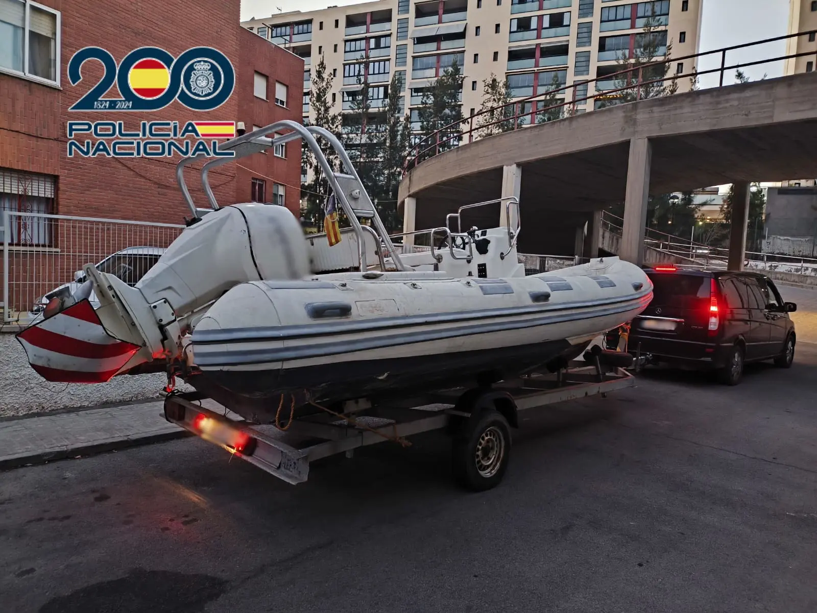 Los agentes de la Policía Nacional de la Brigada Provincial de Extranjería interceptaron la furgoneta y realizaron las primeras verificaciones. Se constató que la embarcación transportada montaba un motor superior al permitido que la legislación la clasifica como de género prohibido. Además, presentaba la matrícula manipulada.