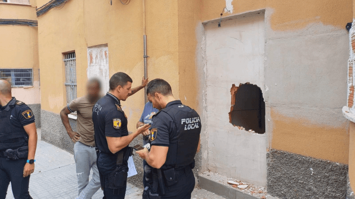 La Policía Local de Elche ha detenido a dos personas por intentar ocupar una vivienda deshabilitada en la avenida de Santa Pola. La Central de Operaciones recibió la llamada de un testigo que aseguraba que dos hombres estaban rompiendo la tapia de una vivienda.