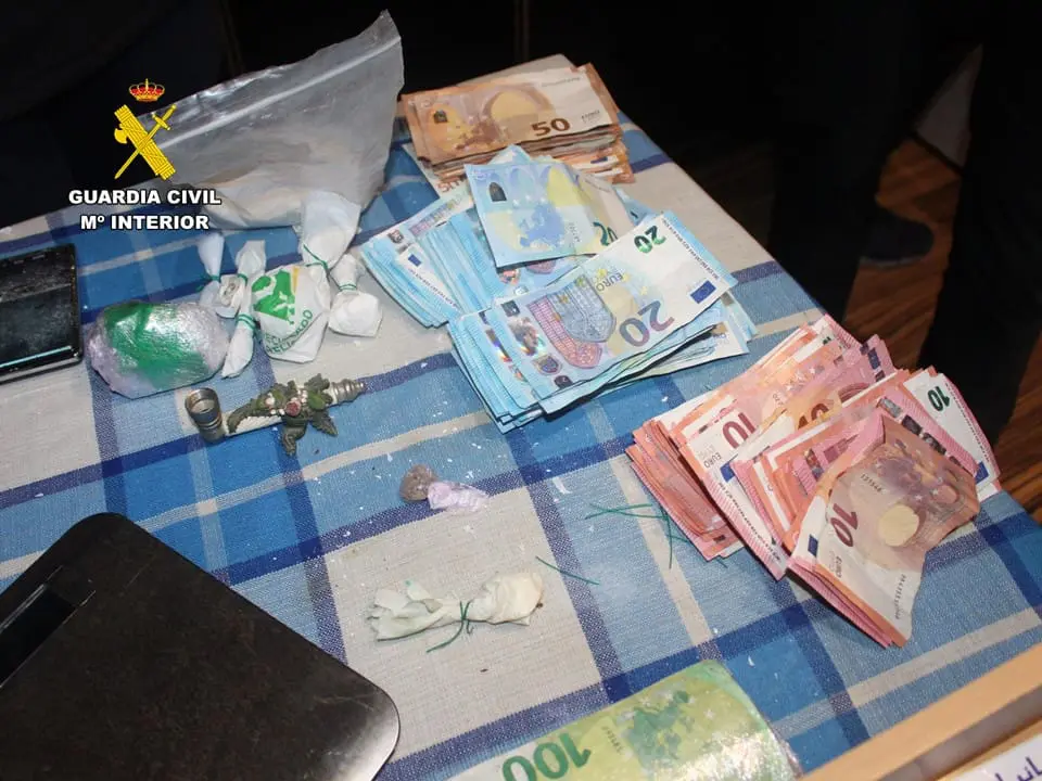 Durante el registro se intervinieron 470 gramos de diversas sustancias estupefacientes, entre ellas cocaína, MDMA-Éxtasis y heroína, así como 14.700 euros en efectivo, 16 teléfonos móviles, dos dispositivos GPS y documentación de interés para la investigación.