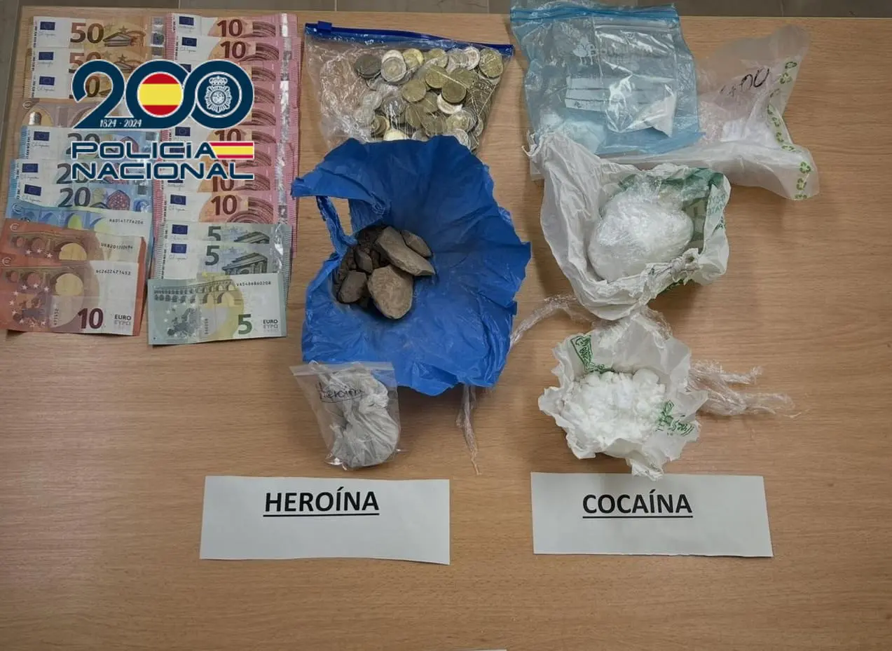 Una vez realizada la detención se realizó una entrada y registro en el domicilio donde se intervinieron 229 gramos de cocaína, 96 gramos de heroína y 450 euros en billetes fraccionados.